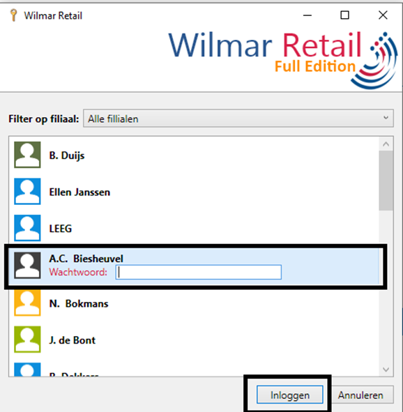 2.log in met de gebruiker waarmee jij Wilmar wilt gaan gebruiken.