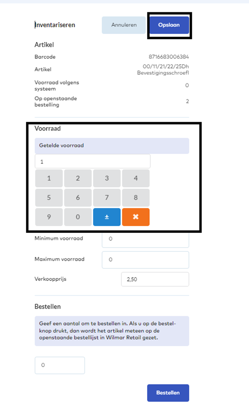 8.Geef nu het aantal producten wat je geteld hebt in bij getelde vooraad en klik op opslaan.