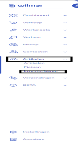 6.klik op artikelen in de linkerkant en op inventariseren.