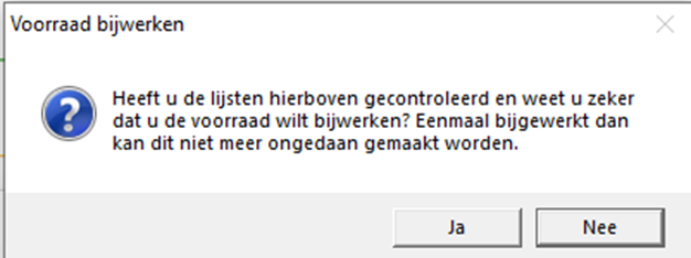 Als je de lijsten door heb genomen en je denk dat het klopt mag je op de knop voorraad bijwerken klikken aan de onderkant. LET op wij kunnen als het proces loopt dit niet terug zetten!!.
