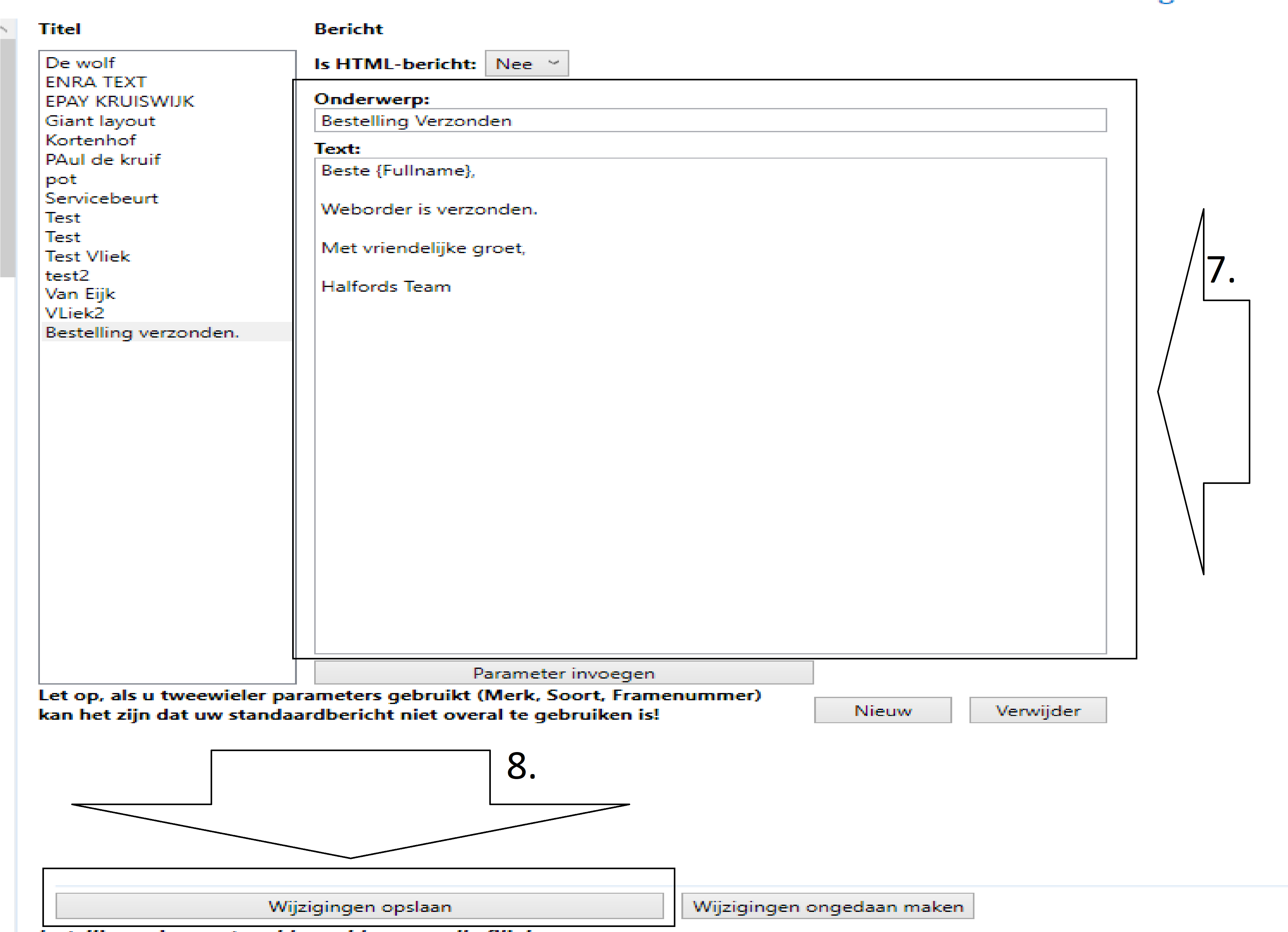 11.klik nu bij versturen aan op E-mail en verander het standaard sjabloon naar bestelling verzonden. Als je dit allemaal hebt gedaan en je vind de tekst goed dan mag je op de knop verstuur klikken.