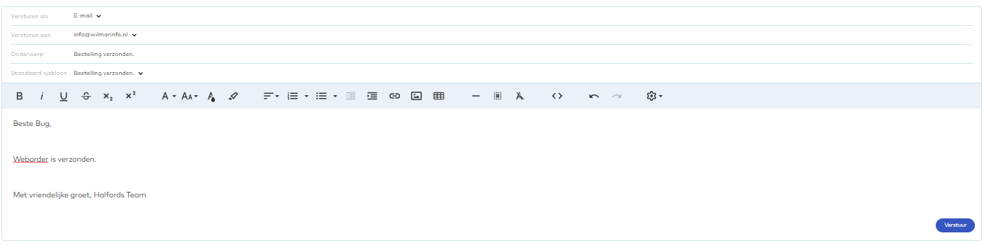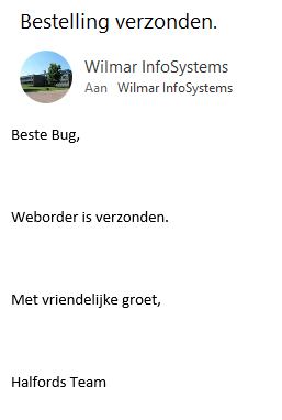 In Wilmar Cloud is het mogelijk om te mailen naar klanten dat de weborder verzonden is.