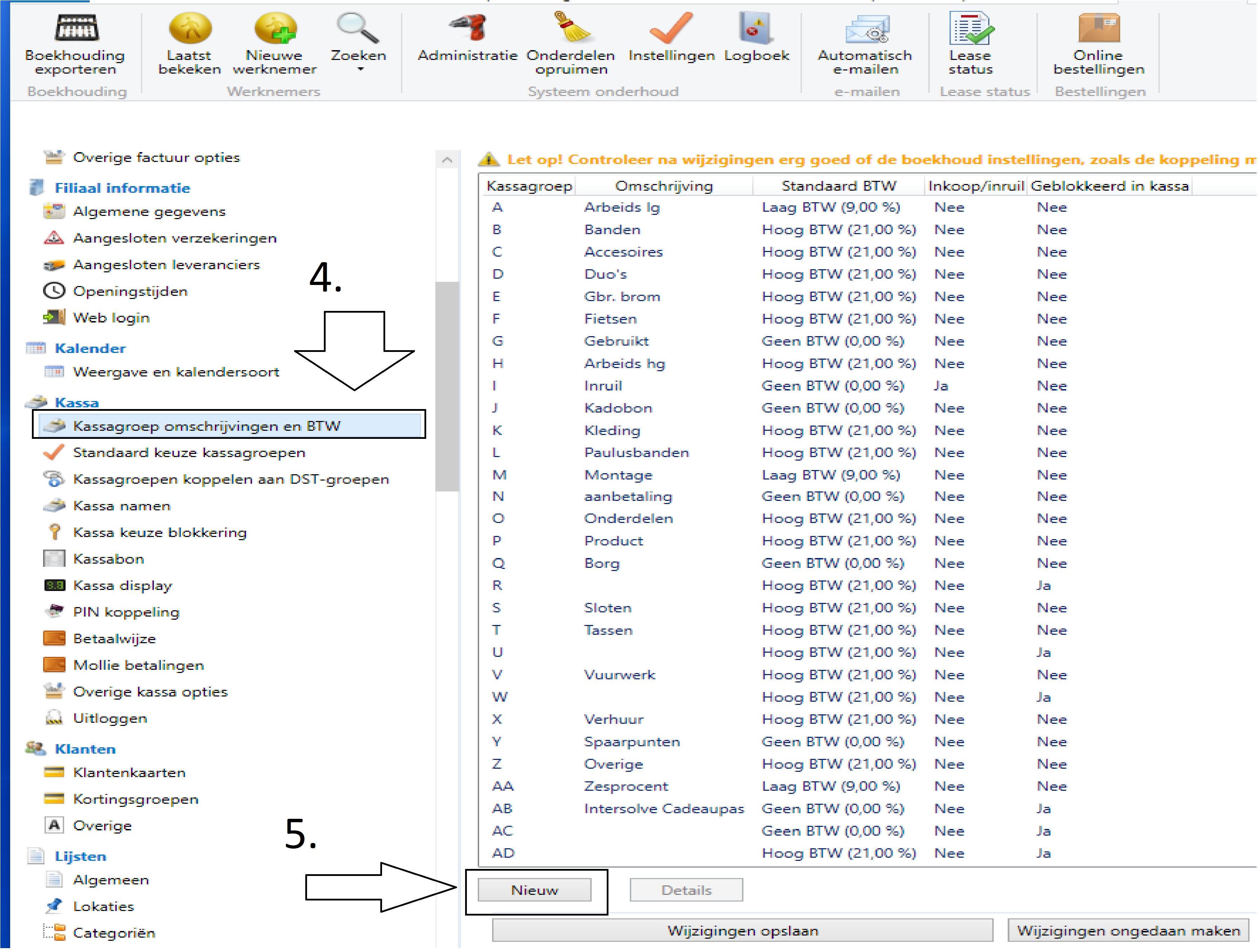 4.Ga naar het kop kassa en selecteer "Kassagroep omschrijving en BTW"