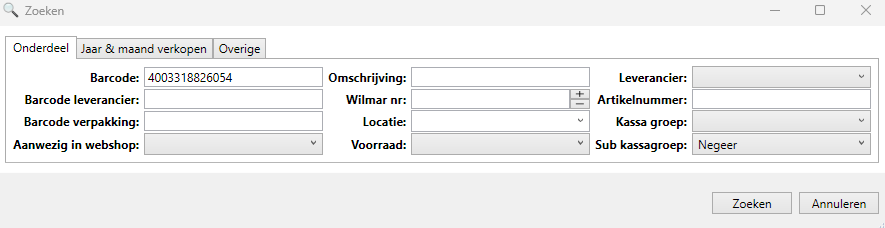 1.1 Via het tabblad 'Onderdelen" per kassagroep of zoekreferentie.