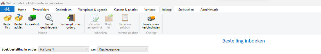 Deze functie is te vinden op het tabblad “Inkoop” en vervolgens de knop “inboeklijst”