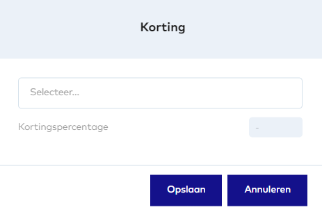 Stap 5: Klik op regel toevoegen en geef in de pop-up aan hoeveel korting er per kassagroep gegeven mag worden (Percentage) en druk op opslaan.