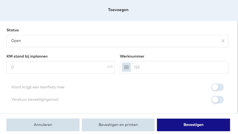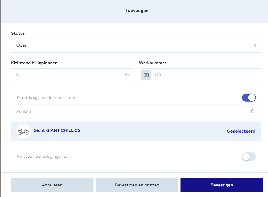 3. Zet de slider om naast "Klant krijgt een leenfiets mee"