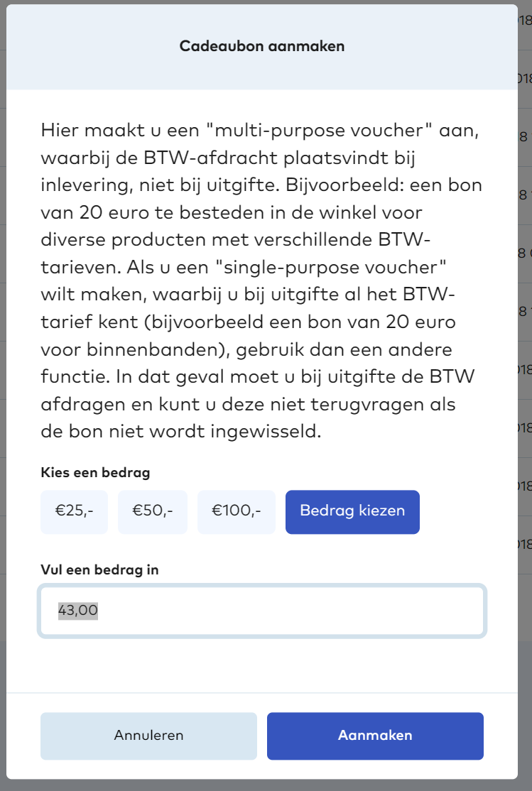 4.Nadat je het juiste bedrag hebt ingegeven klik je op aanmaken.