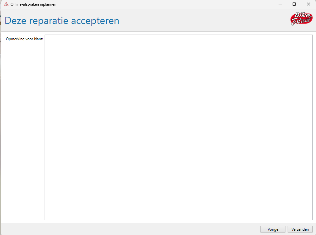 - Bericht naar de klant sturen: In het volgende scherm moet je een bericht naar de klant sturen met de details van de afspraak of reparatie.