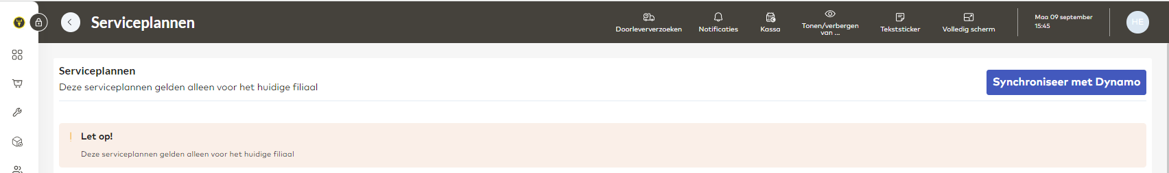 Onder de serviceplannen vindt u de optie Synchroniseer met Dynamo. Klik op deze knop om de synchronisatie te starten.