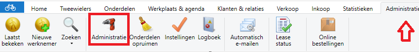 Start Wilmar retail 1 op en selecteer het tabblad administratie en druk op de knop om naar het administratiemenu te gaan.