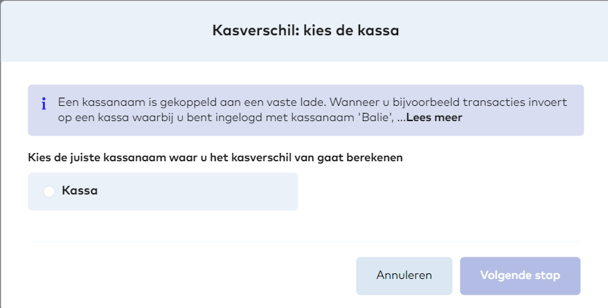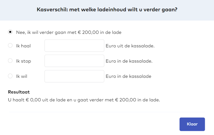 - Als er een kasverschil is, kun je kiezen tussen: