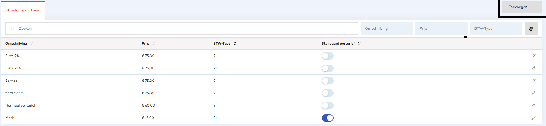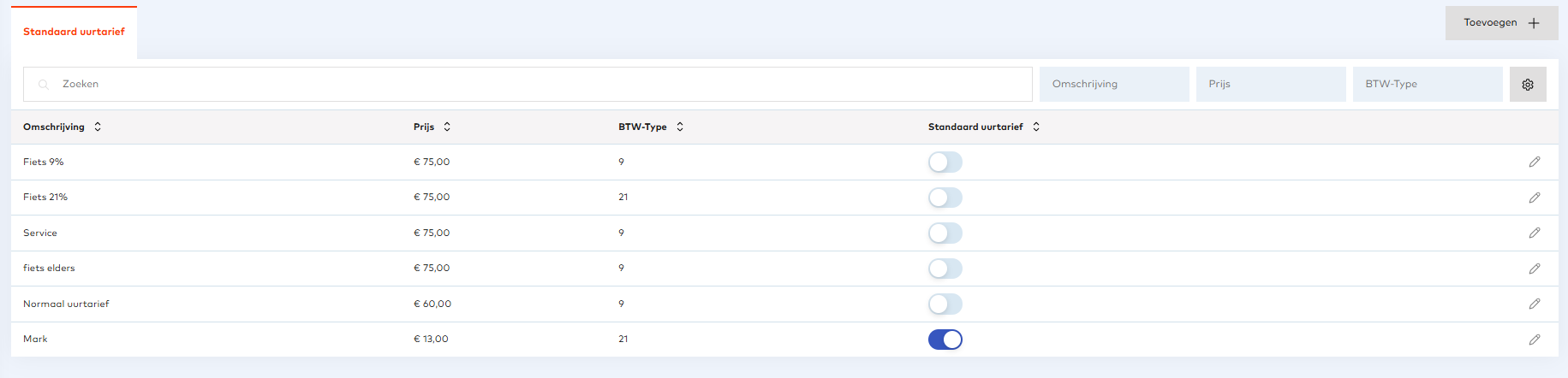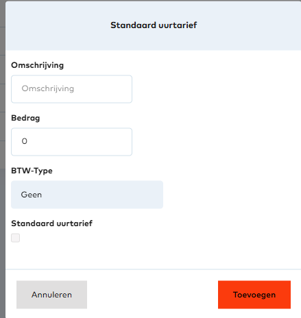 4.Selecteer nu het standaard uur tarief wat je wilt gebruiken. Dit doe je door middel op het schuifje te klikken onder het kopje standaard uurtarief.