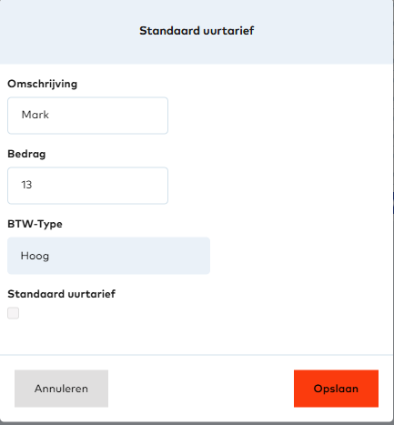 Ook is het hier al mogelijk om aan te geven, dat het een standaard uurtarief wordt.