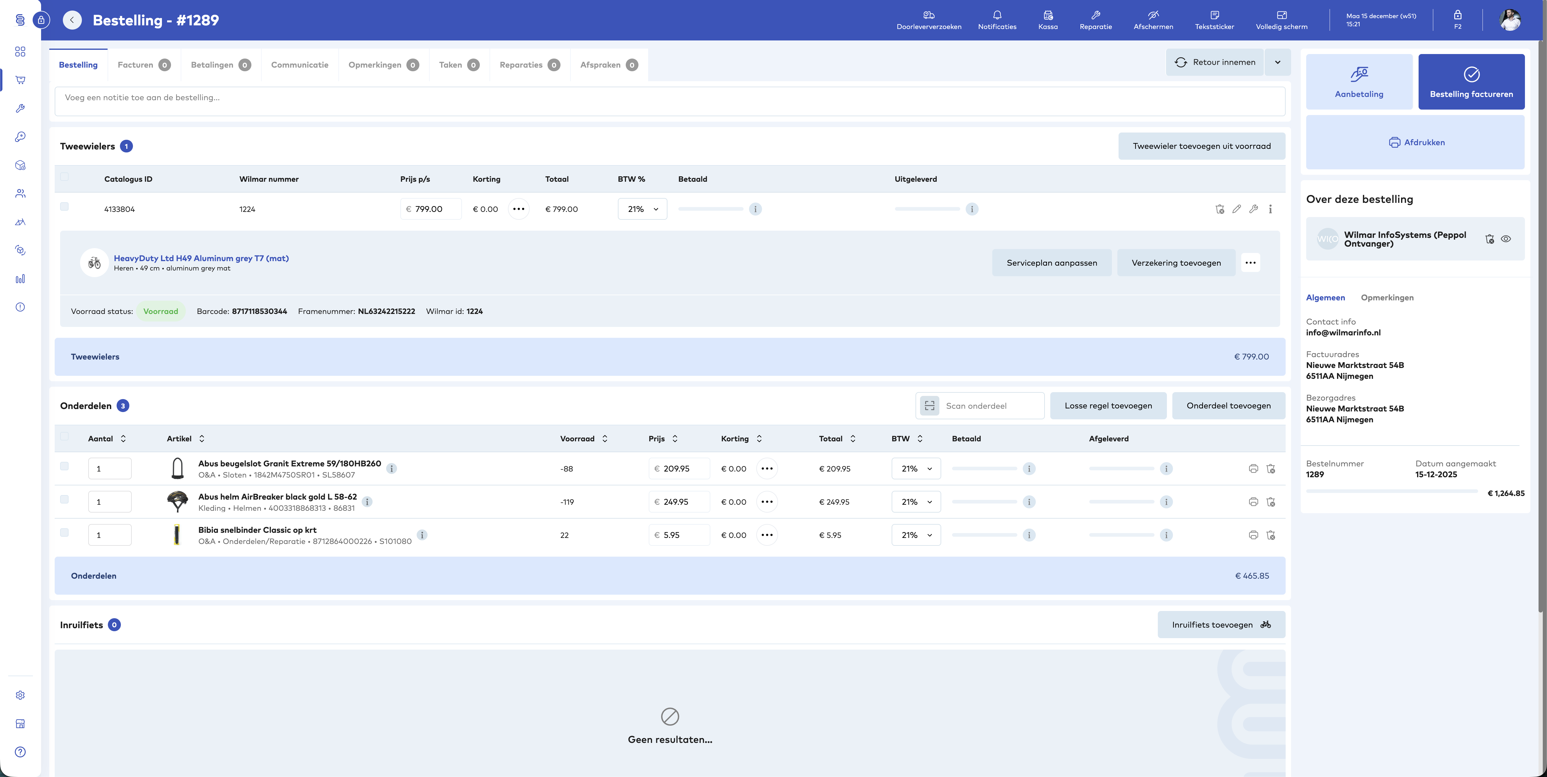 Om een bestelling factuur te versturen op het Peppol netwerk, navigeert u naar een bestelling naar keuze via het bestelling overzicht.
